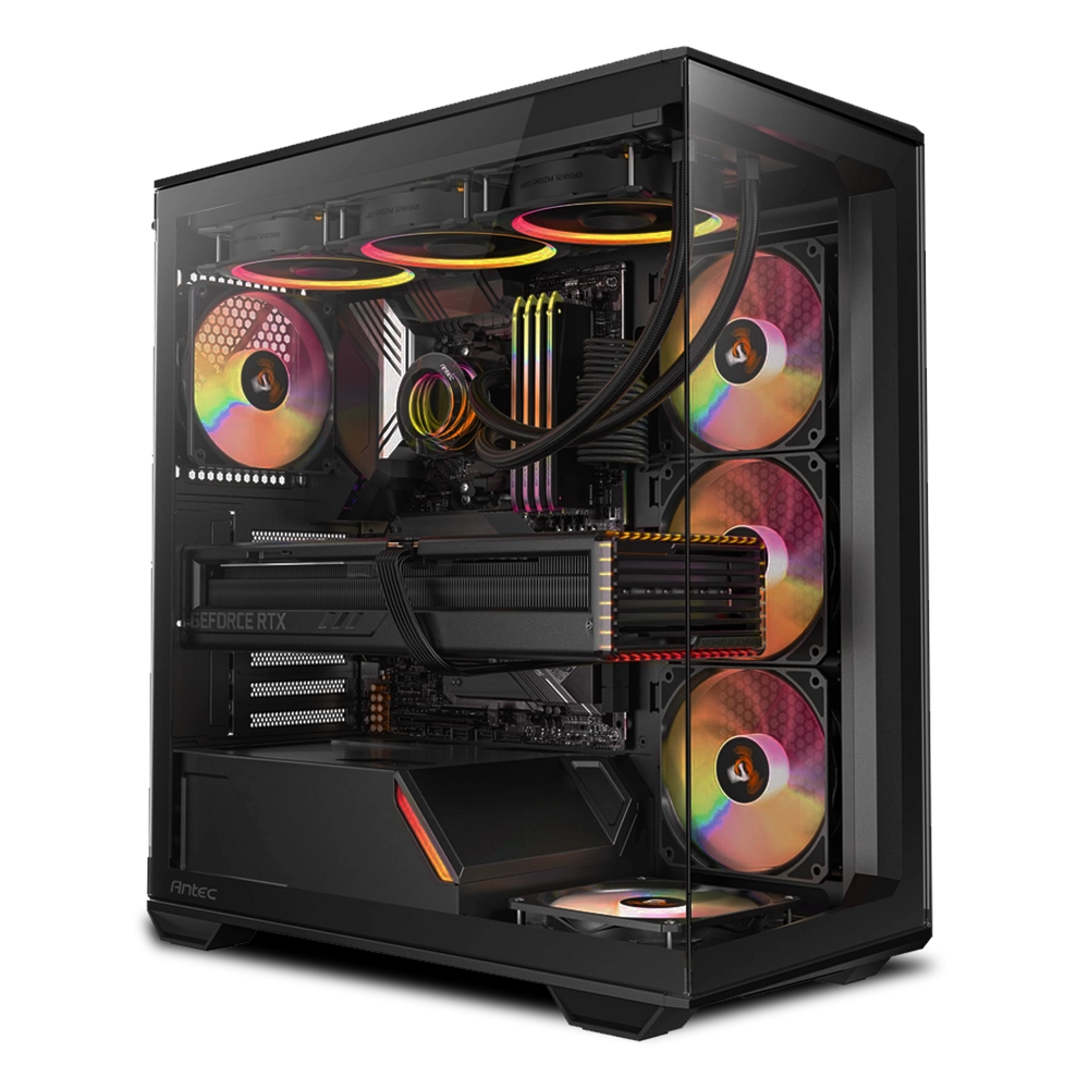 Seleccionamos gabinetes que combinan estética, funcionalidad y un excelente flujo de aire. Diseños modernos y robustos que no solo protegen tus componentes, sino que también realzan la presencia de tu Invictus PC.